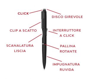 Nel mezzo della penna vi è poi una scanalatura liscia nella quale far scorrere il dito: in men che non si dica un’inaspettata sensazione di benessere pervaderà il tuo corpo e la tua mente. Alla stessa altezza ma dal lato opposto, vi è un interruttore a click da premere fino a che le preoccupazioni non si dissolvono.